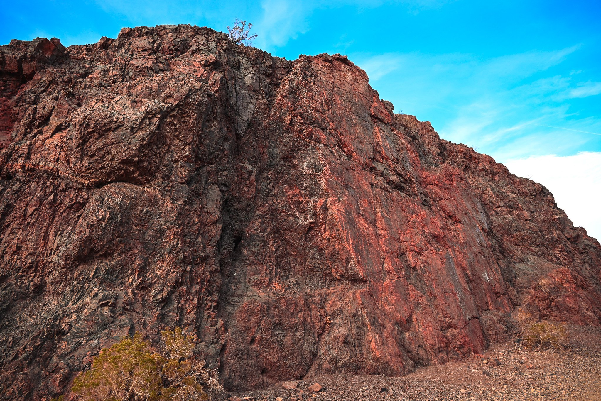 This stretch of the hike is kind of boring. There is an informational placard on the left before you take the turn around the mountain. Things start to get a little more interesting with the ruddiness of the mountains and old trailings from abandoned mines. Still more walking.